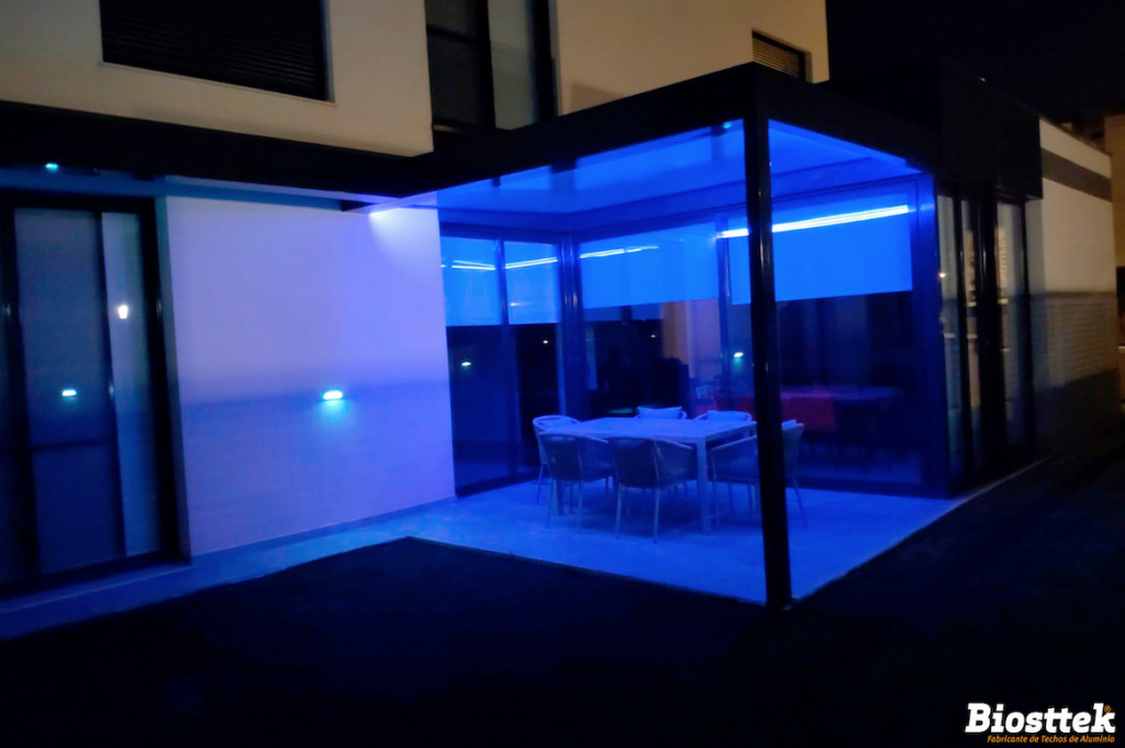 El propietario de esta vivienda es el primer afortunado en disfrutar del nuevo techo de Biosttek S-QUADRATTO, un producto totalmente innovador en el mercado de los cerramientos. Se trata de un techo fijo que oculta por completo la parte interna gracias a su estructura perimetral, que le aporta un diseño elegante y novedoso en comparación con el resto de estructuras fijas.