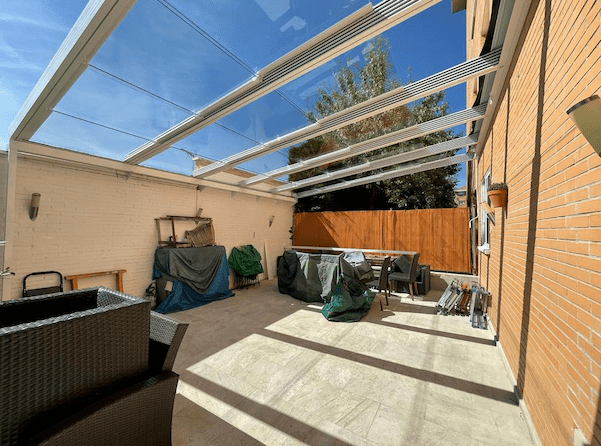 En Biosttek nos adaptamos a las necesidades de nuestros clientes, ofreciéndoles techos a medida totalmente personalizables. Es el caso de esta nueva instalación realizada por uno de nuestros distribuidores de confianza, donde se ha utilizado un SERIE-100 con apertura manual de hasta 80% mediante husillo. Su acabado lacado en blanco es uno de sus aspectos más llamativos, que encaja a la perfección con el vidrio laminado 4+4 transparente, convirtiendo así la terraza en un espacio único.